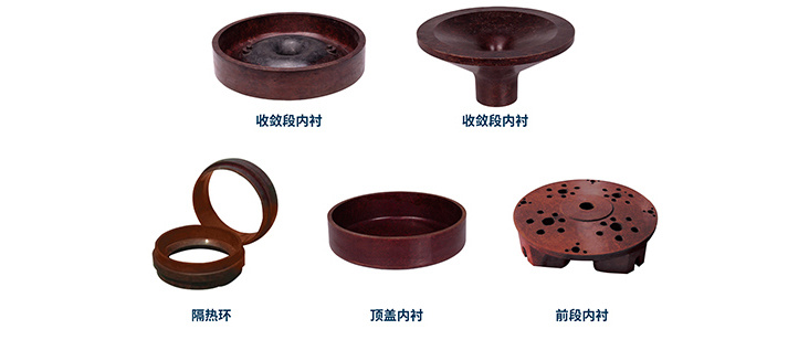 该类产品组件具有良好的耐烧蚀与隔热性,耐高速燃气冲刷,可在3000°C、燃气速度2000m/s冲刷条件下工作 6s 以上。